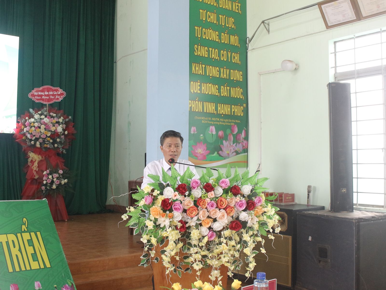 Đồng chí Vũ Đình Hạnh- Bí Thư Đảng uỷ, Chủ tịch HĐND xã phát biểu tại Đại hội Đại biểu Hội Nông dân xã Ia Boòng