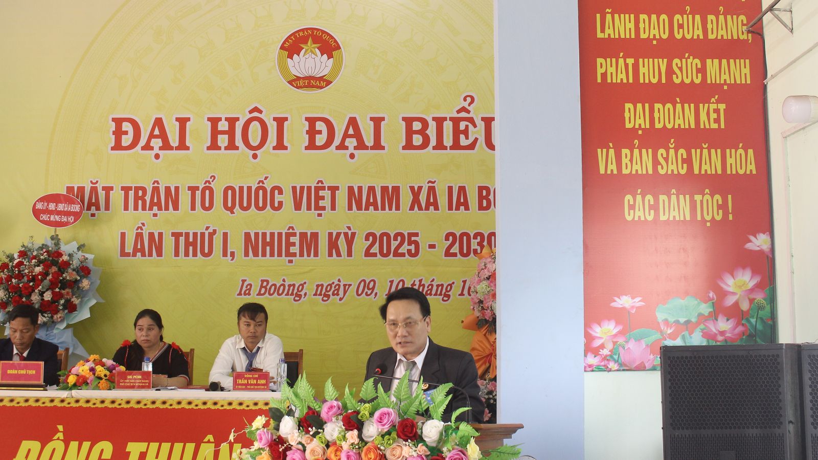 Phát biểu chỉ đạo tại Đại hội, lãnh đạo Ủy ban MTTQ Việt Nam tỉnh Gia Lai và Đảng ủy xã Ia Boòng ghi nhận, biểu dương những kết quả đạt được của công tác Mặt trận trong nhiệm kỳ qua, đồng thời đề nghị MTTQ xã tiếp tục phát huy tinh thần đoàn kết, đổi mới, sáng tạo, bám sát cơ sở, góp phần thực hiện thắng lợi các mục tiêu phát triển kinh tế – xã hội của địa phương.