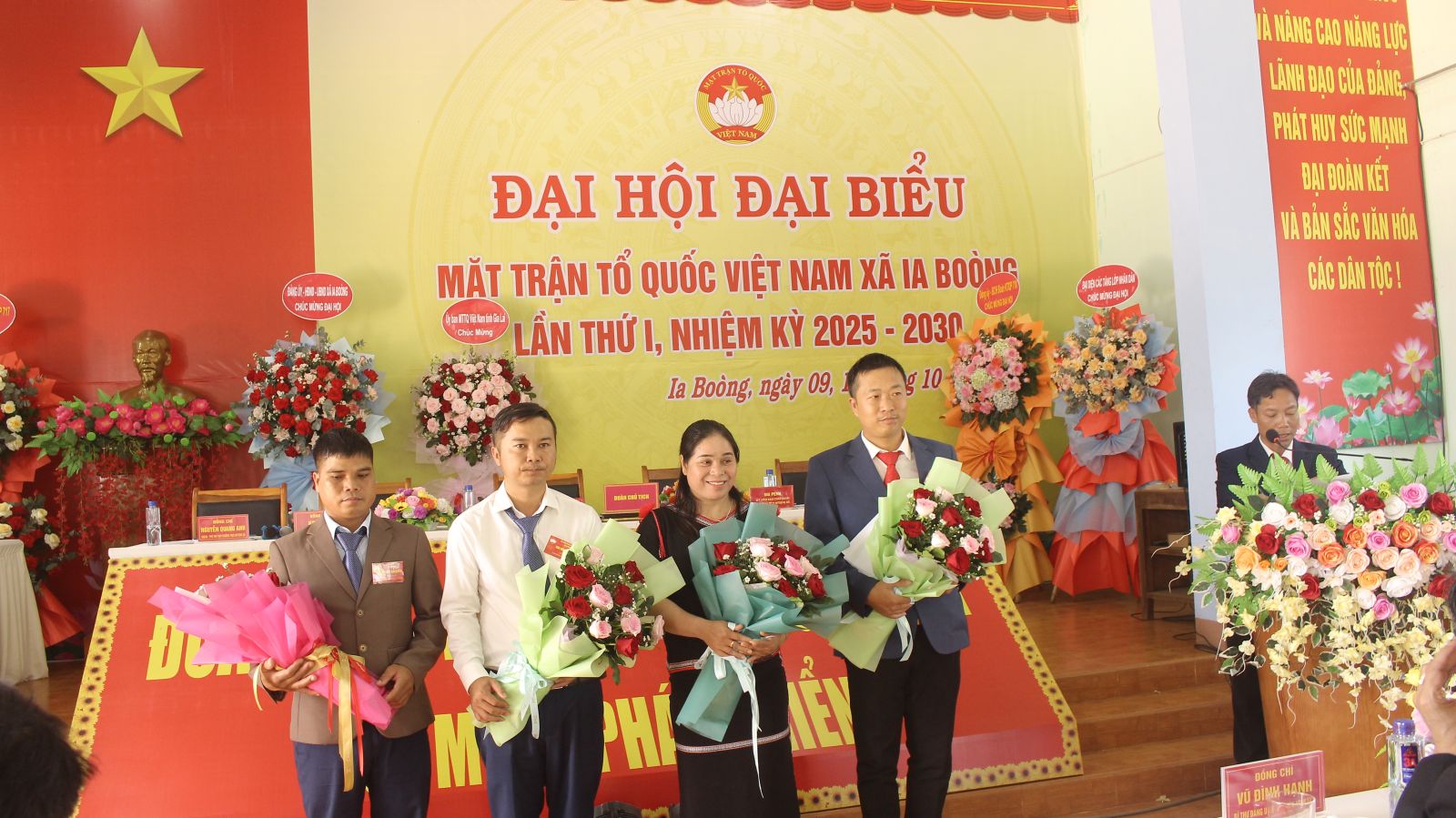Đại hội đã hiệp thương cử Ủy ban MTTQ Việt Nam xã Ia Boòng khóa I, nhiệm kỳ 2025–2030, gồm 52/56 (trong đó, khuyết 4 , các tổ chức hội khi đủ sẽ bầu sau) các vị tiêu biểu đại diện cho các tầng lớp nhân dân, tôn giáo, dân tộc và các tổ chức thành viên. Tại phiên họp thứ nhất, Ủy ban MTTQ xã đã hiệp thương cử Ban Thường trực, gồm chức danh: Ông Rơ Siu Hôm - Chủ tịch UBMTTQ xã nhiệm kỳ 2025-2030; các ông bà: Siu Penh - Phó Chủ tịch UBMTTQ xã nhiệm kỳ 2025-2030 kiêm Chủ tịch Hội LHPN xã; Trần Văn Anh -Phó Chủ tịch UBMTTQ xã nhiệm kỳ 2025-2030 kiêm Bí thư Đoàn TNCSHCM xã; Kpă Đại - Phó Chủ tịch UBMTTQ xã nhiệm kỳ 2025-2030 kiêm Chủ tịch Hội Nông dân xã và Nguyễn Quang Anh - Phó Chủ tịch UBMTTQ xã nhiệm kỳ 2025-2030 kiêm Chủ tịch Hội CCB xã.