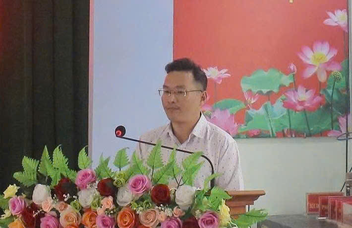 Đồng chí Trương Quang Bảo- Phó Chủ tịch Uỷ ban nhân dân xã thông qua một số tờ trình xin ý kiến Hội đồng nhân dân xã khoá XIII