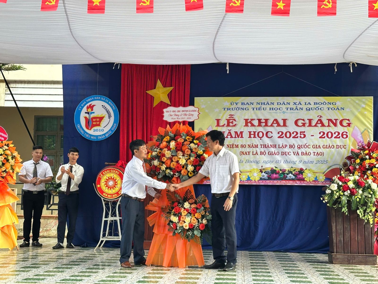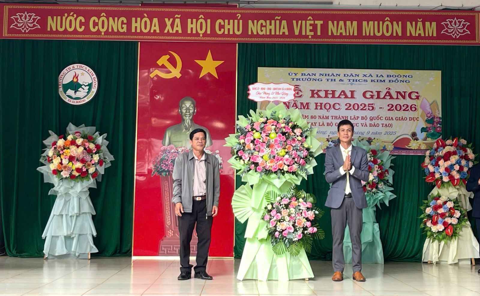 Đồng chí Kpuih Plinh- Phó Bí thư Đảng uỷ xã đến dự và tặng hoa trường TH&THCS Kim Đồng nhân dịp năm học mới 2025-2026