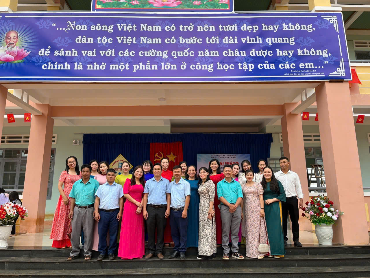 Đồng chí Trương Quang Bảo-Phó Chủ tịch UBND xã chụp ảnh kỷ niệm cùng các thầy cô giáo Trường Tiểu học Đoàn Thị Điểm khi đến dự Khai giảng