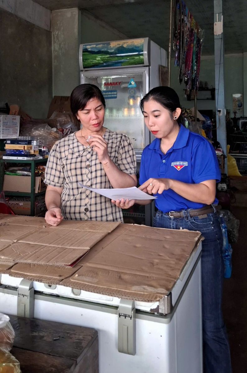 Cán bộ Đoàn viên, thanh niên xã hướng dẫn các quán tạp hoá cài đặt ứng dụng thanh toán không dùng tiền mặt