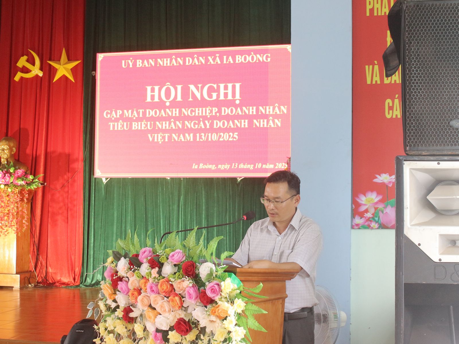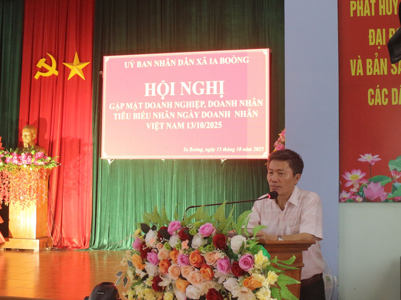Phát biểu kết luận Hội nghị, đồng chí Vũ Đình Hạnh – Bí thư Đảng ủy, Chủ tịch HĐND xã nhấn mạnh: chính quyền xã Ia Boòng luôn trân trọng, đồng hành và tạo điều kiện thuận lợi nhất để doanh nghiệp, hộ kinh doanh yên tâm đầu tư, mở rộng sản xuất, góp phần xây dựng xã ngày càng phát triển giàu mạnh. Đồng chí cũng kêu gọi cộng đồng doanh nghiệp tiếp tục phát huy tinh thần đổi mới, sáng tạo, đoàn kết cùng chính quyền địa phương thực hiện thắng lợi các mục tiêu phát triển kinh tế - xã hội năm 2025 và những năm tiếp theo.